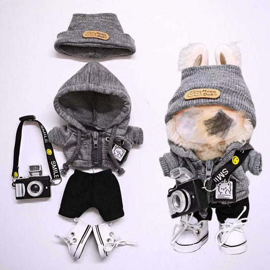 Gray-style knitted suit for Labubu doll clothes, universal for the 1st, 2nd and 3rd generations.